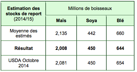 - Des stocks de report 2014/15 stables