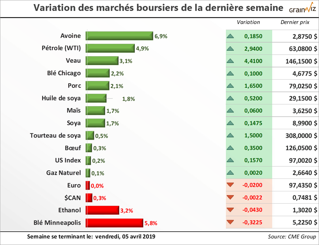 Ce mardi, nous aurons la publication du rapport mensuel d'offre et demande du USDA. Sans surprise, on s'attend à ce que le USDA réajuste à la hausse les stocks 2018-19 de maïs américains à en moyenne 1,991 milliards de boisseaux contre 1,835 milliards de boisseaux. Avec le recul en février de l'utilisation de maïs pour la fabrication d'éthanol aux... Pour en savoir plus sur la situation actuelle et la tendance des marchés des grains et des viandes au Québec, lisez la suite dans la dernière édition du 08 avril 2019 de la lettre financière.