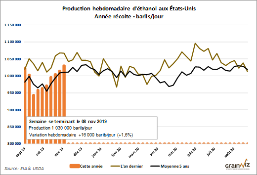 Avec de meilleures marges, la production américaine d'éthanol gagne "enfin" en fermeté.