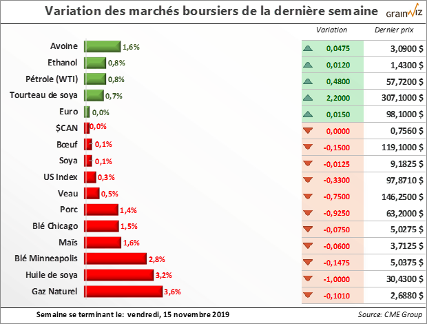 Par contre, dans l'intérim, avec le dernier rapport mensuel du USDA, les marchés prennent note plutôt que le manque de vigueur de la demande... Pour en savoir plus sur la situation actuelle et la tendance des marchés des grains et des viandes au Québec, lisez la suite dans la dernière édition du 18 novembre 2019 de la lettre financière.
