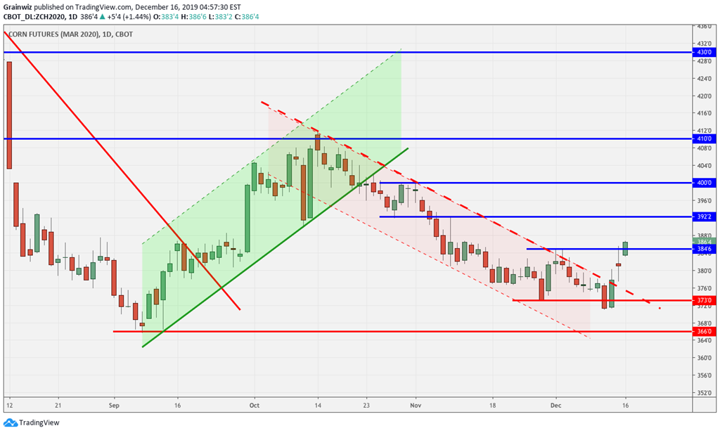 Le marché du maïs sera finalement parvenu à se dissocier de sa tendance baissière en place depuis octobre. Avec le rebond en cours, le prochain objectif est maintenant un retour à plus de 4,00 $US/bo.. Ce serait la 1re fois depuis 2014 que le prix du maïs se transige au-dessus de ce niveau pour un mois de décembre.