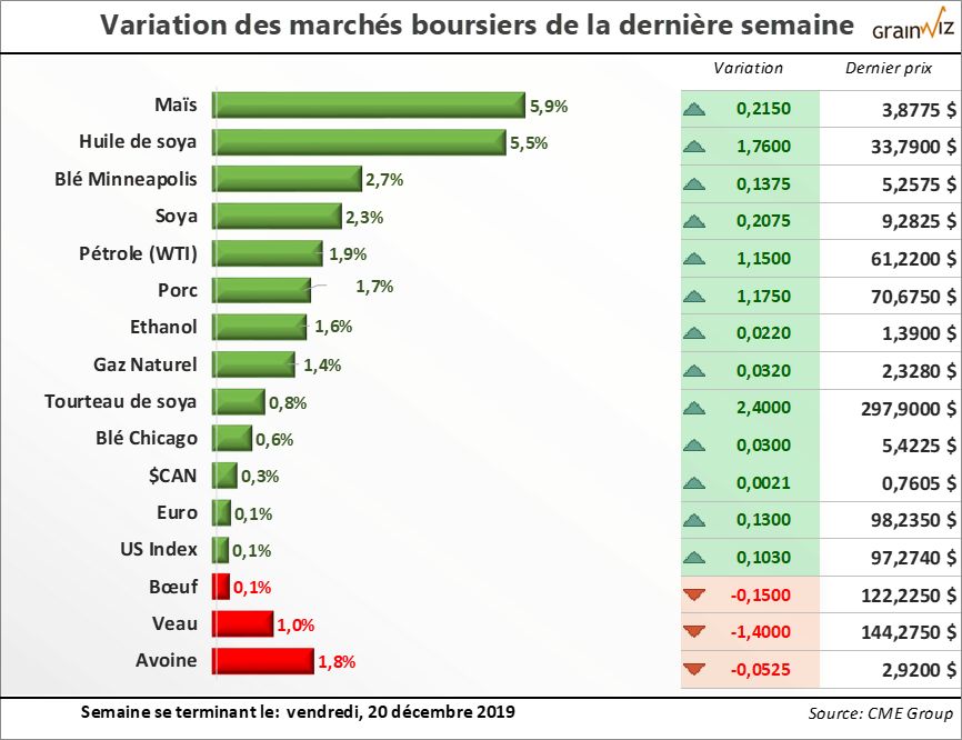 Bien entendu, la grande question sera maintenant pour débuter 2020 de combien le USDA réduira la dernière récolte américaine de maïs. Avec les superficies... Pour en savoir plus sur la situation actuelle et la tendance des marchés des grains et des viandes au Québec, lisez la suite dans la dernière édition du 23 décembre 2019 de la lettre financière.