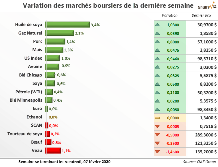 Bien entendu, le grand inconnu actuel demeure du côté de la Chine avec le coronavirus qui poursuit sa propagation, et la grande question à savoir si oui ou non, la Chine réalisera des achats plus substantiels de maïs (... éthanol et... Pour en savoir plus sur la situation actuelle et la tendance des marchés des grains et des viandes au Québec, lisez la suite dans la dernière édition du 10 février 2020 de la lettre financière.