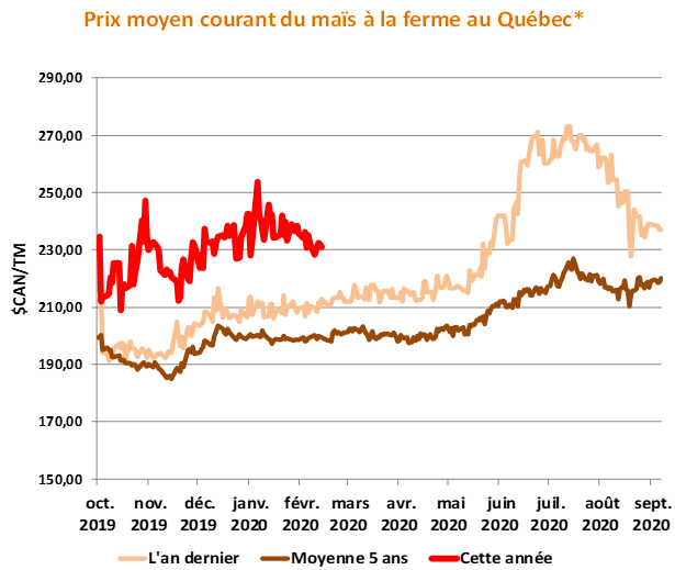 Les nouvelles auront été généralement positives du côté de la demande de maïs au cours des dernières semaines, avec... Pour en savoir plus sur la situation actuelle et la tendance des marchés des grains et des viandes au Québec, lisez la suite dans la dernière édition du 18 février 2020 de la lettre financière.
