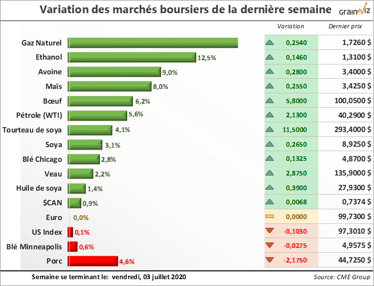 Le USDA a révélé des ensemencements américains de maïs de 92 millions d'acres, nettement moins que les intentions de mars dernier de 97 millions d'acres, et moins également... Pour en savoir plus sur la situation actuelle et la tendance des marchés des grains et des viandes au Québec, lisez la suite dans la dernière édition du 06 juillet 2020 de la lettre financière.