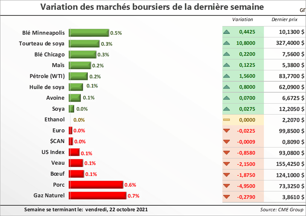 - Avec la hausse des marchés de l'énergie, les fabricants d'éthanol profitent d'excellentes marges et le rendent bien, avec une production hebdomadaire d'éthanol aux États-Unis très vigoureuse depuis 3 semaines.