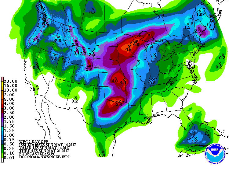 Après quelques jours de répit la semaine dernière et pour débuter la semaine, de bonnes accumulations sont encore attendues aux États-Unis pour la mi-mai.