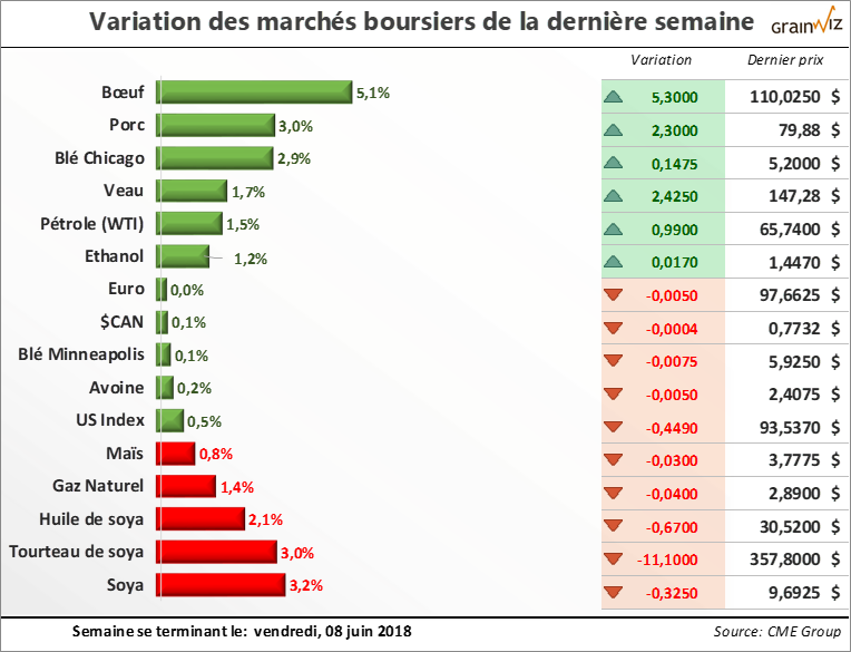 Avec les fonds spéculatifs qui étaient encore très investis dans le marché du maïs à la fin mai, on ne doit cependant s'étonner de la pression baissière particulièrement forte qui a animé les prix; leur nervosité face aux tensions commerciales américaines avec plusieurs pays... Pour en savoir plus sur la situation actuelle et la tendance des marchés des grains et des viandes au Québec, lisez la suite dans la dernière édition du 11 juin 2018 de la lettre financière.