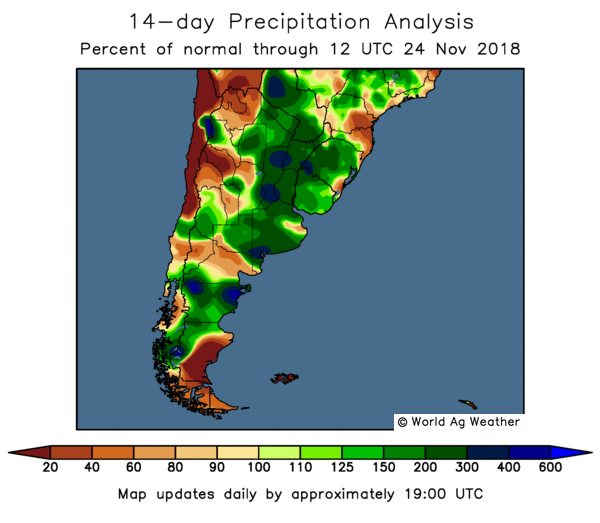 En Amérique du Sud, certains commencent à avoir à l'oeil les conditions trop humides observées dans certaines régions en Argentine et dans le centre du Brésil.