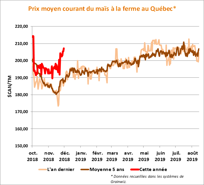 Le marché du maïs au Québec propose une fermeté post-récolte intéressante par comparaison des dernières années, avoisinant déjà 205-210 $ la tonne (selon les régions).