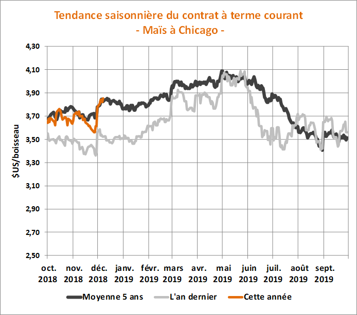 À Chicago, à partir de la mi-décembre, le marché du maïs n'a pas pour habitude de retourner à la hau...s