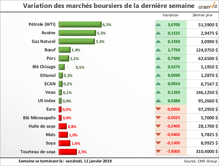 Avec la fermeture partielle du gouvernement américain, plusieurs rapports ne sont pas disponibles depuis la mi-décembre. La semaine dernière, le USDA n'a pas présenté vendredi son rapport mensuel d'offre et demande de grains (WASDE) dont la publication est reportée à une date indéterminée.