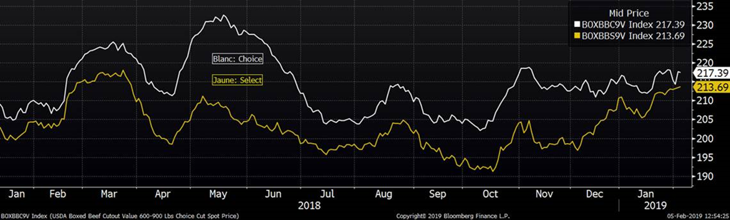 En ce qui attrait aux rapports USDA, le rapport Cattle-on-Feed du mois de janvier sera publié le 22 février (au lieu du 25 janvier) et celui du mois de février sera publié le 8 mars (au lieu du 22 février). Pour le rapport biannuel du cheptel bovin américain, l’USDA reporte sa publication au 28 février (au lieu du 31 janvier). Notez que ces dates sont après le 15 février, la date limite de la pause de 3 semaines au shutdown, il faudra donc que le gouvernement américain trouve une solution avec Trump pour le financement de son mur pour espérer voir ces rapports (ce qui n’est pas chose faite!).