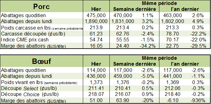 Malgré une mauvaise rentabilité du secteur, les éleveurs de porcs américains continuent de grossir leur troupeau. L’ouverture de plusieurs nouveaux abattoirs ces 2 dernières années est venu ajouter de la capacité d’abattage et l’anticipation de la demande du porc vivant augmentera pour venir remplir ces installations. Cependant, malgré l’augmentation du nombre de mise-bas, la cadence de l’expansion fût limitée par une augmentation plus lente que prévue du nombre de porcelets sevrés par portée.
