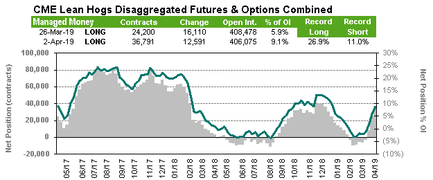 Le non-aboutissement des rencontres entre la Chine et le États-Unis influencent un peu l’état d’esprit des négociants. Il faut noter que les fonds d’investissement et les spéculateurs ont accumulé des positions acheteurs récemment ce qui les placent dans une situation confortable à ce jour. Il y a quelques temps ces fonds étaient des vendeurs nets de contrats de porc pour devenir acheteurs de plus de 35 000 contrats.