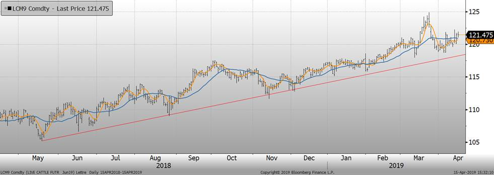 Malgré le positivisme du marché, il faut rappeler que le USDA prévoit tout de même des hausses de production de plus 3.6% pour le 2ieme trimestre de 2019 versus 2018. Et pour les derniers trimestres de l’année, le USDA prévoit des hausses de plus de 6% et 3% respectivement. Les contrats à terme sont à prime de plus de $20 USD / 100 livres par rapport au prix au comptant présentement ce qui est anormalement élevé à ce stade dans l’année.