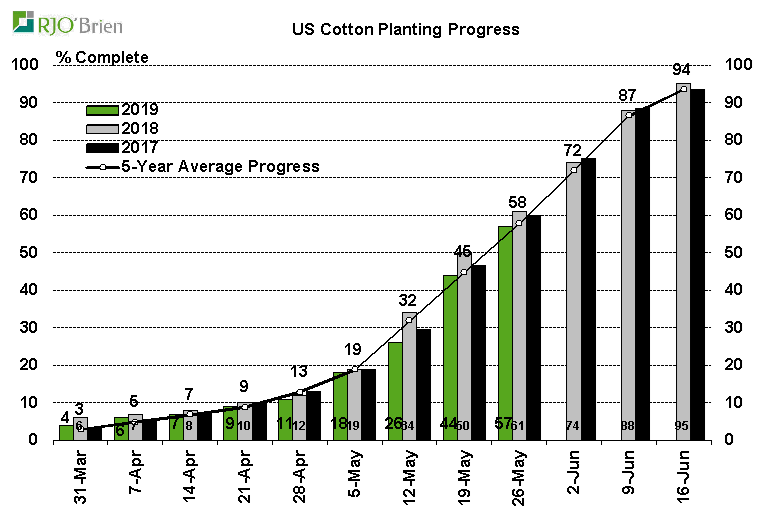 Globalement on parlait de 92.8M d’acres dans le maïs et 84.6M dans le soja, soit un total de 177.4 millions. Actuellement on est à 53.8 millions de semé en maïs et 25.5 millions pour les fèves selon l’USDA. Sur les 177.4 millions d’acres prévu, seulement 79.3 millions sont semés, soit moins de la moitié ou 44%.