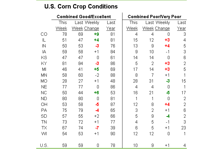 - Maïs : qualité inchangée à 59% good/excellent, vs 78% l’an dernier
