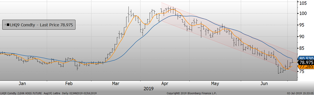 Les données d’abattages de la semaine dernière se situaient en hausse de 6.5% par rapport à la même semaine l’an dernier. Par contre, quand on multiplie cette donnée par le poids moyen des porcs abattus on arrive plutôt à un chiffre de 9.8% supérieur aux mêmes données l’an dernier. Cette accélération des abattages demeurent le point le plus négatif de l’été 2019 et au lieu de parler de prix records atteints en raison des problèmes de productions mondiaux, on parle plutôt des prix misérables pour un été qui s’annonçait des plus fantastique. Un problème supplémentaire pour la découpe réside dans le fait du refus de la Chine d’importer de la viande canadienne, les exportateurs canadiens doivent réduire leurs prix et proposer les produits (temporairement) à des acheteurs qui biddent des prix plus bas que d’ordinaire sachant que nous sommes pris avec…