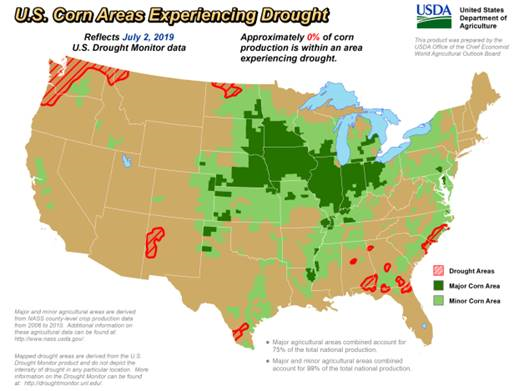 Les conditions des cultures sont « stable ». Elles ne sont pas très bonnes, mais au moins elles ne se détériorent pas plus…. Le corn est un peu mieux, le soja est un peu moins beau. Somme toute on est pas mal dans le pourcentage prévu pour les commentateurs du Midwest. Donc oui, ça ne s’empire pas, mais ça ne s’améliore pas non plus…. Je veux dire, pour la peine. 1% c’est 1% on me diras….
