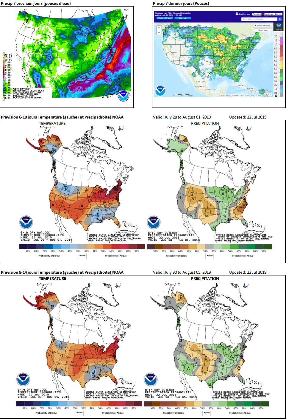 Le maïs a perdu le petit point de pourcentage qu’il avait gagné la semaine dernière tandis que le soja est identique. À ce point ci je tente plus de déceler si une tendance s’installe d’un bord comme de l’autre. Si les conditions ne font que s’empirer ou s’améliorer me renseigne possiblement plus sur les perspectives de rendement.