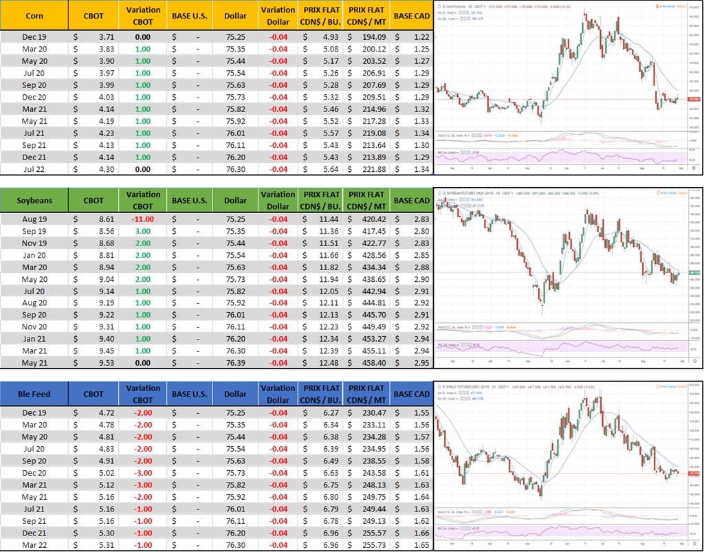 - Tweet sans aucun détail. « Giant Package » ok… mais encore? Des promesses on en a vu d’autre. Tsé les guerre commerciales sont facile à gagner… j’ai déjà entendu ça. M’enfin. Le marché CBOT a grimpé sur cette information ce matin, mais le manque de précision s’est estompé plus tard en journée.