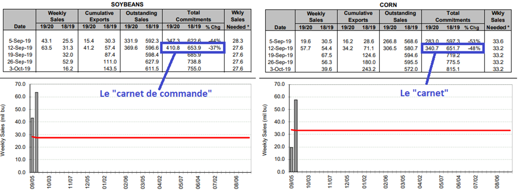 Bon partons du point initial sur la cible de l'USDA en matière d'exportation de maïs et de soja.