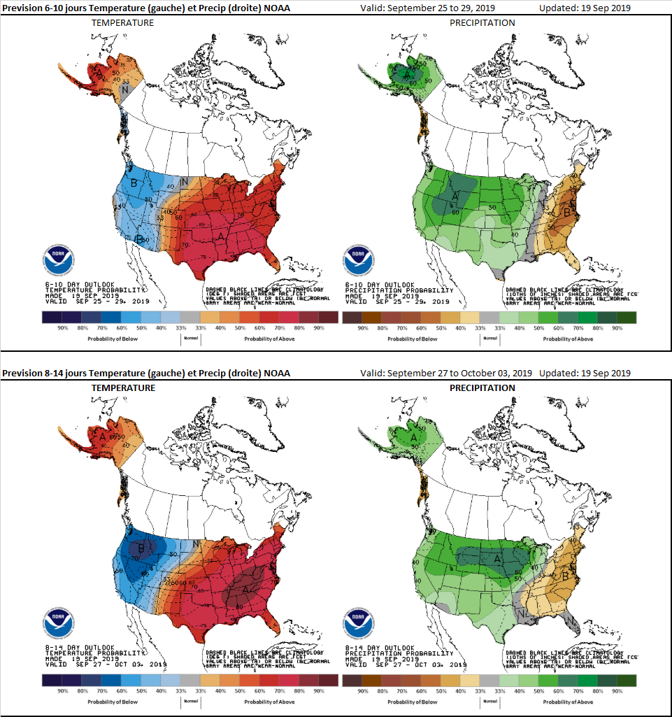 Je surveille la météo afin de savoir s'il y aura une gelé mortelle qui pourrait réduire les rendement et faire un changement significatif au niveau des récoltes. Ce n'est pas le cas. Il annonce très beau (chaud) pour les prochaines semaines et on ne craint pas pour une gelé au moins d'ici la première semaine d'octobre (peut-etre plus mais je ne m'avance pas sur la météo)