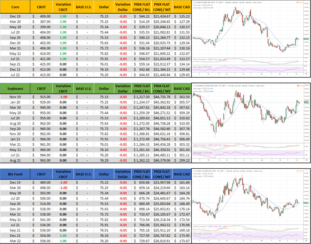 L’USDA mettra à jour son rapport offre-demande cette semaine – il pourrait y avoir des étincelles. Avec les implications du Grain Stock lundi dernier, la marge de manœuvre est beaucoup plus mince. Donc, plus de nervosité du marché face à une baisse de rendement/superficie. Jeudi 10 Octobre. J’ai dit pourrait – conditionnel présent, le fait exprimé n'est pas certain – madame Françoise ma prof de Français serait contente. Semi-contente soyons honnête – elle me donnerait une étoile de conjugaison mais coté orthographe syntaxe ponctuation c’est très bof.