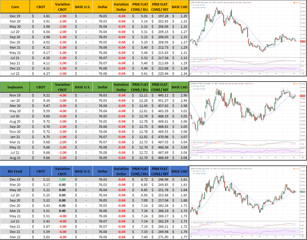 - Corn : rendement attendu à 167.5 BPA (similaire à Octobre 168.4)