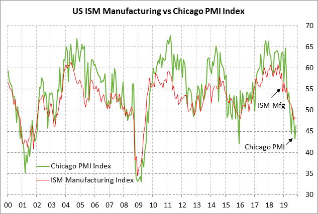 Le PMI de Chicago devrait s'améliorer - Le consensus du marché est que le PMI de décembre d'aujourd'hui devrait afficher une augmentation de +1,7 point à 48,0, ajoutant à +3,1 points la reprise de novembre à 46,3. Le PMI de Chicago est tombé à un plus bas de 4 ans de 32,2 en octobre, puis a rebondi à la hausse de +3,1 points à 46,3 en novembre. Néanmoins, le niveau de l'indice de 46,3 en novembre était inférieur au niveau d'expansion-contraction de 50,0, ce qui montre que les dirigeants du secteur manufacturier de la région de Chicago sont toujours pessimistes quant aux perspectives de la région.