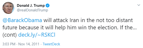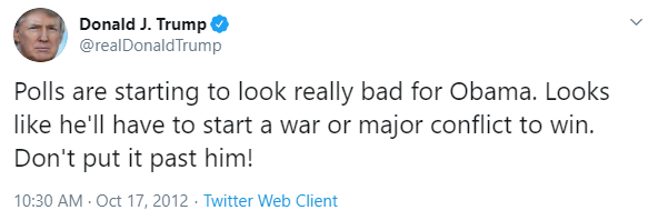 Parlant d’année électorale et de conflit, j’ai retrouvé des petits bijoux sur le compte Twitter du Président. Des gazouillis qui datent de 2011 à 2013, bien avant sa présidence. Je ne suis pas un expert politique, mais je trouve le timing génial comme si c’est arrangé avec le gars des vue. Je n’ai pas de parti pris démocrate/républicain, je fais juste partager des faits divers je vous laisse juger par vous-même.