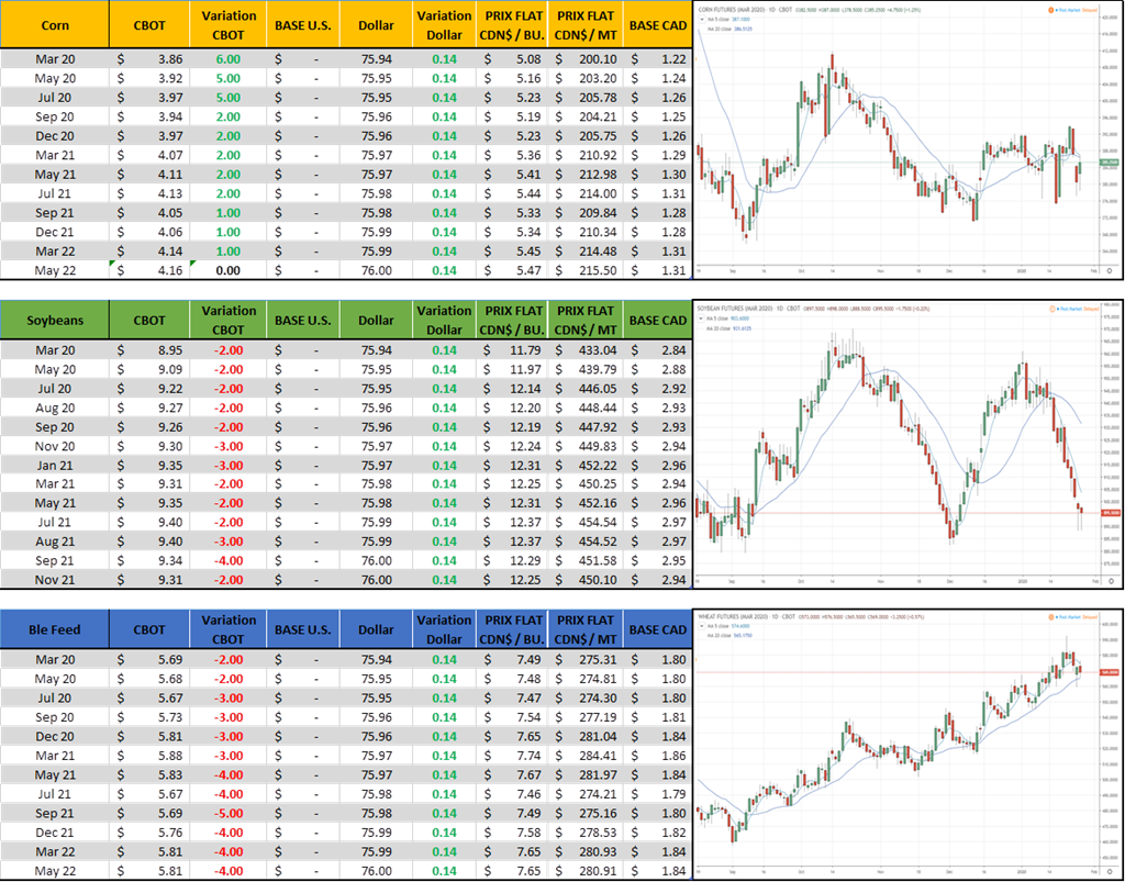 J’ai comme un ras-le-bol de la Chine. Une indigestion de egg roll. Ça change quoi le coronavirus sur les bilan offre demande? Potentiellement pas grand-chose à court terme mais ça met de la peur dans le marché. Je comprends la logique, le commerce risque d’être au ralenti, les déplacements aussi, donc j’en déduis que le marché craint que la Chine n’achète pas « autant » de denrées que prévu. C’est un élément négatif dans le marché, mais la Chine n’achète déjà pas assez pour atteindre les cibles. Dire que les exportations pourraient être faible alors qu’elles sont déjà faible ce n’est pas une breaking news. Le marché tente d’être optimiste que la Chine va acheter, mais à date c’est encore très timide et l’accélération tant attendu se fait encore attendre.