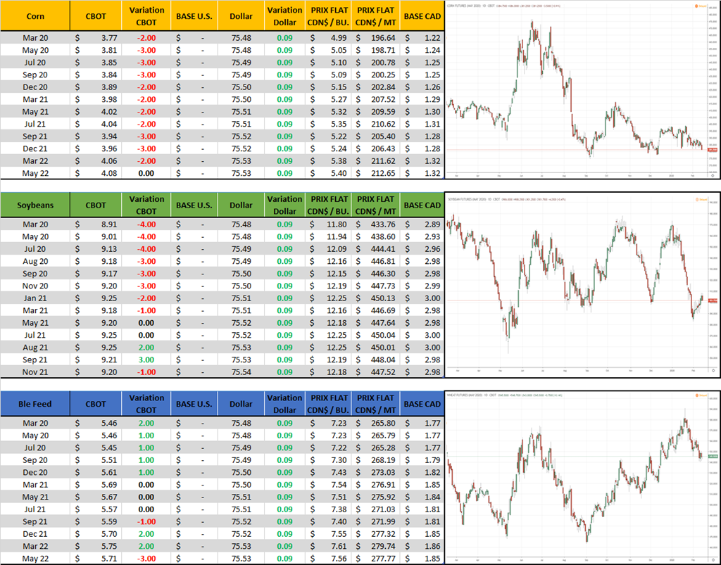 L'entente de phase 1 kick demain le 15 février (30 jours apres la signature) et le marché se demande si les États Unis vont redevenir le coup de coeur numéro 1 des Chinois. Après tout c'est la St Valentin et ca serait un concept cute de rapprochement. Par contre les statistiques d'exportations ne laissent pas croire que les intentions du 40 milliard sont atteignables.... La chine vient de booker 6 cargos de maïs Ukrainien. Est-ce que c'est le dernier deal avec l'Ukraine avant de venir au USA? Je ne sais pas.