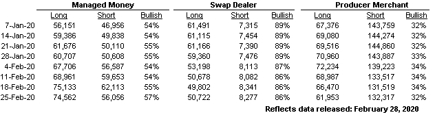 Le rapport du 25 février du CFTC montrait que les spéculateurs ont acheté 5 486 contrats et sont maintenant nets à long 18 506 contrats.