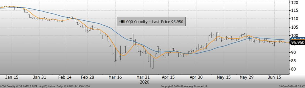 L'optimisme est le sentiment dominant ce matin, alors que les relations sino-américaines semblent reprendre et que des pourparlers de relance économique ont lieu en Europe. La Chine a annoncé qu'elle accélérerait ses achats de produits agricoles pour se conformer à l'accord de phase 1. On pourrait donc s’attendre à une retour en force des commandes de porc et soya dans les prochaines semaines. Le marché du porc gagne 1c/lb ce matin, à l’exception du mois de juillet et est inchangé en raison de la faiblesse du cash.