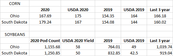 Premier jour du ProFarmer Crop Tour en Ohio et Dakota ; très prometteur pour les rendements ! Je fais un tableau récapitulatif