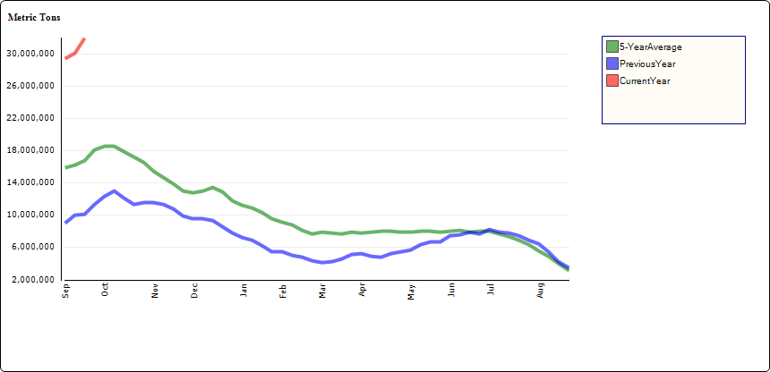 - Soja : vente de 3.2 millions de tonnes (beaucoup vers la Chine)
