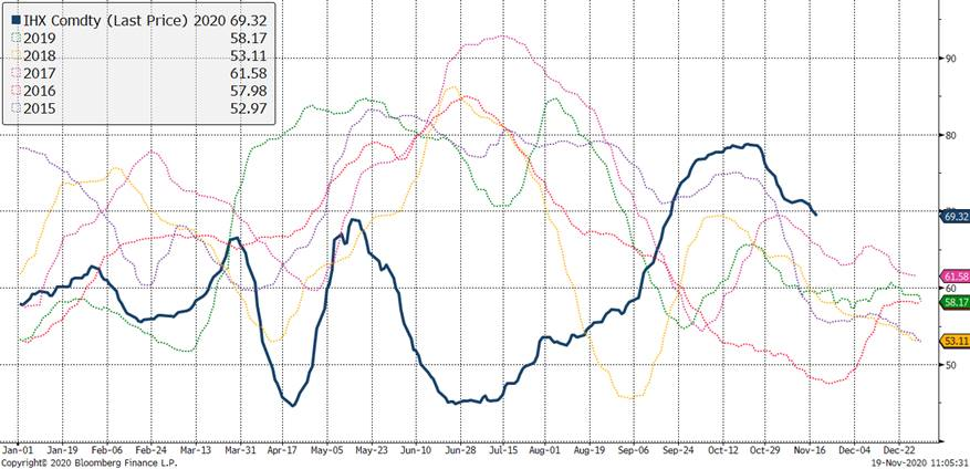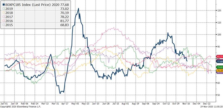 Ainsi les craintes liées à la Covid, au ralentissement des exportations, une sortie des spéculateurs font en sorte que le marché pourrait se diriger vers les creux récents.