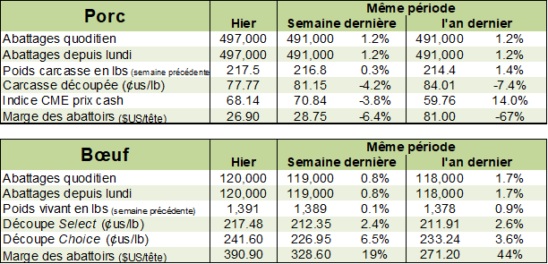 Les mêmes questions au sujet des moulées se posent pour les producteurs de porcs en Amérique du Nord. La hausse du prix du maïs et du tourteau pourrait décourager certains à produire davantage.