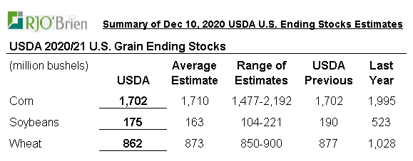 Dans tous les cas, comme c’était plutôt attendu pour le mois de décembre, les bilans n’ont pas changé pour la peine. En fait, c’est très normal ; il est encore trop tôt pour s’aventurer sur le rendement au Brésil ou en Argentine, et avec les rapports sur les productions « finales » en janvier, le rapport WASDE de décembre passe souvent inaperçu. L’approche de l’USDA est bien normale, et ils ont préféré être conservateur car la météo au Brésil n’est pas idéale et donc, peut-être, que la récolte est un peu plus petite, mais il est encore trop tôt pour s’aventurer sur le sujet.