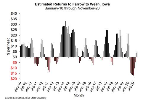Mercredi après-midi, l’USDA publiera le rapport trimestriel Hogs and Pigs, dévoilant le cheptel porcin aux États-Unis au 1er décembre. Si les prévisions se réalisent, ce serait la première contraction du troupeau américain depuis la DEP au printemps 2014. La plus importante baisse est au niveau de cheptel reproducteur avec presque 2% moins de truies. Évidemment, les importantes pertes qu’ont connu les maternités en 2020 auront des impacts sur toutes la production américaine de la prochaine année. Ci-dessous, vous trouverez les estimés du rapport de mercredi. Il y aura aussi le rapport Cold Storage mardi après-midi.