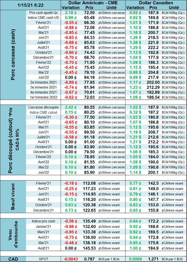 Décembre 2021 -> 69.00 cents ou 178 $CA/100kg