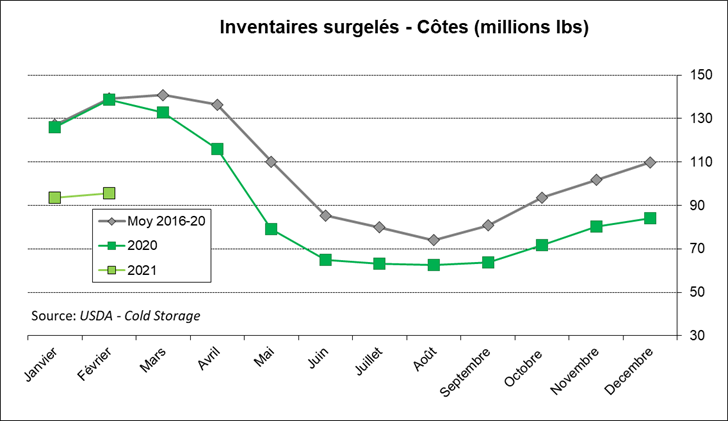 Rapport du Cold Storage au 28 février 2021. Les grandes lignes sont :