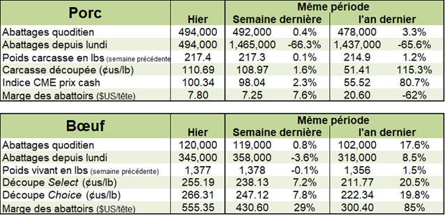 Le USDA a révélé ce matin que les exportations américaines dans le porc s’étaient chiffrés à 33 400 tonnes métriques Le Mexique a commandé 23 000 tonnes et constitue près de 69% du total! Le Japon arrive deuxième avec 3400 tonnes et l’Australie, en troisième place avec des importations de 1600 tonnes. La Chine se situe quatrième ex-aequo avec la Corée du Sud ayant commandé 1200 tonne chacune.