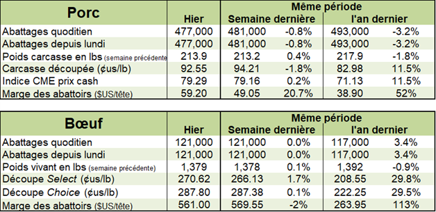 Le USDA a encore réussi à surprendre certains négociants dans les grains hier (baisse des rendements de soya). Il faut rappeler que le USDA a sorti son rapport mensuel Supply / Demand au niveau des grains et on sait que le USDA profite de cette publication pour mettre à jour la production de viande prévue pour les prochains mois.