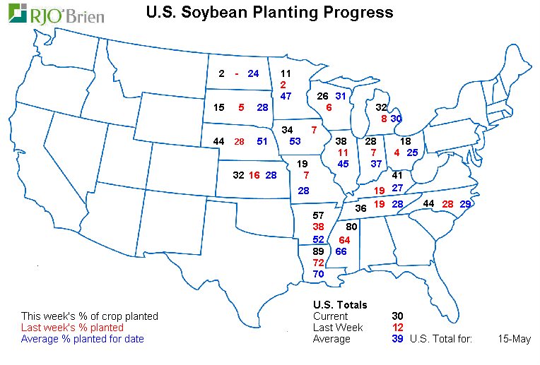 - Soja : semé à 30% vs 12% la semaine dernière et 39% en moyenne