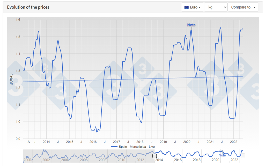 Les prix européens continuent sur leur lancée et progressent. D’après un commentaire lu ce matin, les prix en Espagne commencent à se dégourdir et prennent le chemin de la hausse. Il est intéressant de constater cela après l’annonce de cas de fièvre porcine africaine près de la frontière Allemagne et la France la semaine dernière. De plus, ce n‘est pas seulement aux États-Unis que nous avons eu des cas de SRRP. En Espagne aussi, les producteurs ont connu des épisodes sévères de la maladie avec la souche Rosalia. Plusieurs milliers de porcelets sont décédés au cours des derniers mois. Le manque de porcs pourraient forcer les acheteurs à payer plus cher pour leur approvisionnement.