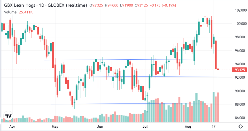 Le USDA a publié les ventes à l’exportation jeudi dernier et c‘était, comment dire, minables! Les ventes ont atteint 13 600 tonnes métriques. Je dois vous rappeler que pour rencontrer certains objectifs d’exportation du USDA, le niveau de vente doit se situer près de 23 000 tonnes par semaine. Les ventes d’il y a 2 semaines étaient de 32 000 tonnes avec la Chine qui avait acheté 17 000 tonnes. Tout le monde croyait la Chine allait poursuivre ces achats… Les acheteurs chinois ont raffiné, depuis plusieurs années, leurs méthodes d’achat. Même si le feu est pris dans leur maison, il n’appelleront pas les pompiers essayant plutôt d’éteindre le feu avec quelques seaux d’eau. C’est la même chose dans le porc. Même s’ils ont besoin d’acheter des milliers de tonnes sur les marchés, ils ne paniqueront pas en essayant d’acheter tout et tout de suite. Peut-être la Chine voudra-t-elle acheter davantage dans les prochaines semaines, mais elle est et restera très discrète.