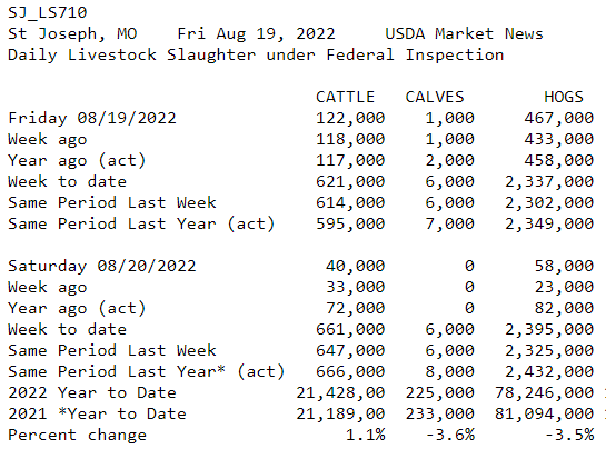 A moins qu’il n’y ait encore des révisions, le USDA prétend que l’industrie a abattu 37 000 porcs de moins la semaine dernière versus la même semaine en 2021. C’est une baisse de 1.5% du nombre de porcs versus l’an dernier. La situation continue de demeurer sous le niveau prévu dans le dernier rapport Hog & pig de juin. On prévoyait plutôt une baisse de 0.5% / 0.8% pour cette période de l’été. Par conséquent : moins de porcs! C’est probablement LA raison principale devoir des porcs au comptant à plus de $1.20 USD / livres aux États-Unis. Les abattoirs se livrent une concurrence féroce entre eux.